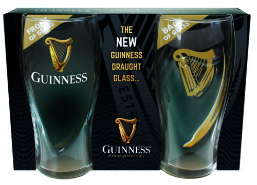 Guinness Logo 2 Pack Pint Glass Set With Embossed Harp